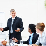 Happy senior business man at a boardroom meeting with colleagues
